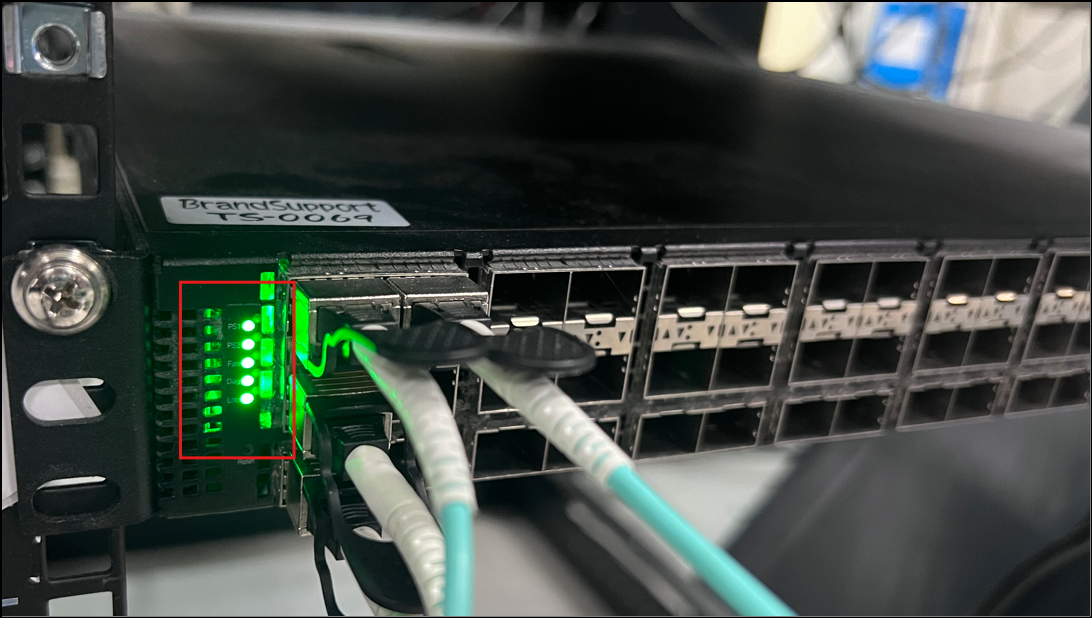 5. After executing the last five commands, the five system LEDs should be forced to light up green (as shown in the photo below).